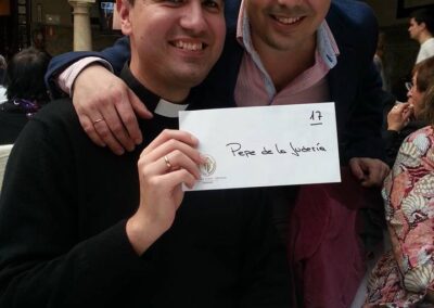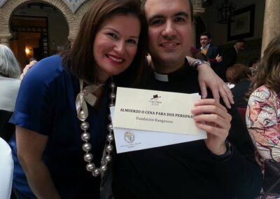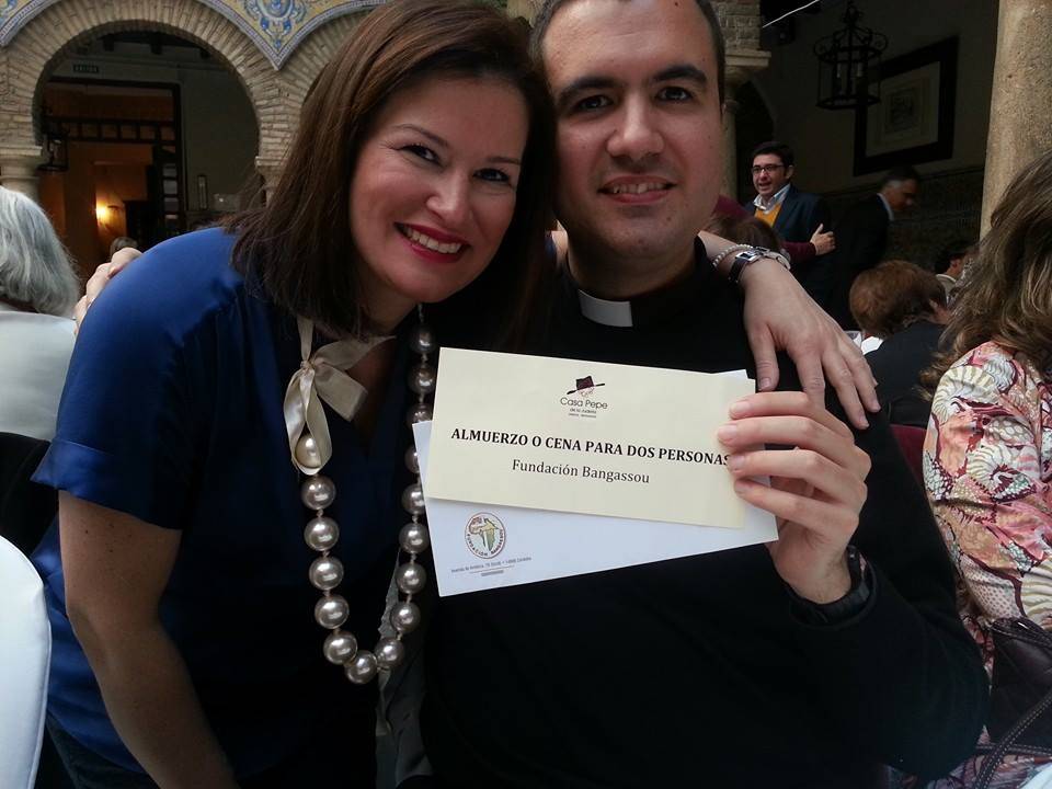 Aunque ha sido complicado, ya veis que he podido acompañaros hoy en el Círculo de la Amistad, que año tras año nos acoge, con el coro rociero, con tantos premios para repartir de tantas empresas, tiendas y particulares que han querido regalarlos, con mi madre, mis amigos de Madrid, de Cáceres, de Málaga y de Antequera y tanta gente buena que ha hecho propaganda de esta comida, con esta nube de jóvenes catequistas, muchos del colegio La Salle, de las Esclavas o del Almanzor, scouts y voluntarios, que hoy hacen de camareros y camareras de Dios, con tantos amigos farmacéuticos que nos ayudaron en el proyecto de la lotería de Navidad. En fin, es imposible nombrar a todos y a todas. La nave de la Fundación Bangassou está llenita de magníficos materiales para enviar allí.