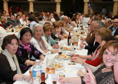 Todo el mundo estaba contento, la comida estupenda, los jóvenes camareros solícitos con las mesas que les correspondieron, los medios de comunicación, carteles, pantallas, micrófonos, el sorteo de regalos, la barra libre, el coro rociero y el grupo de música, la tienda de artesanía, en fin que todo estuvo en su sitio para que pasáramos un día en un gran ambiente de camaradería y solidaridad y así sucedió.