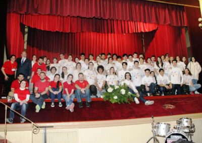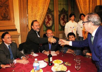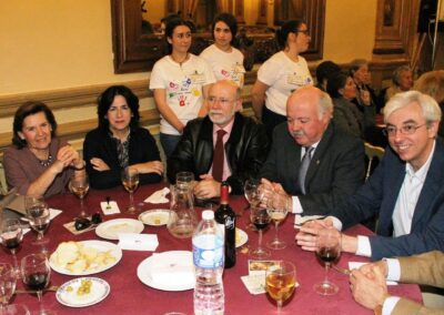 Todo el mundo estaba contento, la comida estupenda, las empresas colaboradoras generosas como siempre, los jóvenes solícitos con las mesas que les correspondieron, los medios de comunicación, pantallas, micrófonos, la barra libre, la orquesta que actúo, la tienda de artesanía, la Cuarentuna (todo una sorpresa magnífica), en fin que todo estuvo en su sitio para que pasáramos un gran día y así sucedió y para colmo, Juanjo disfrutó enormemente con vuestra presencia y el cariño que le prodigasteis.